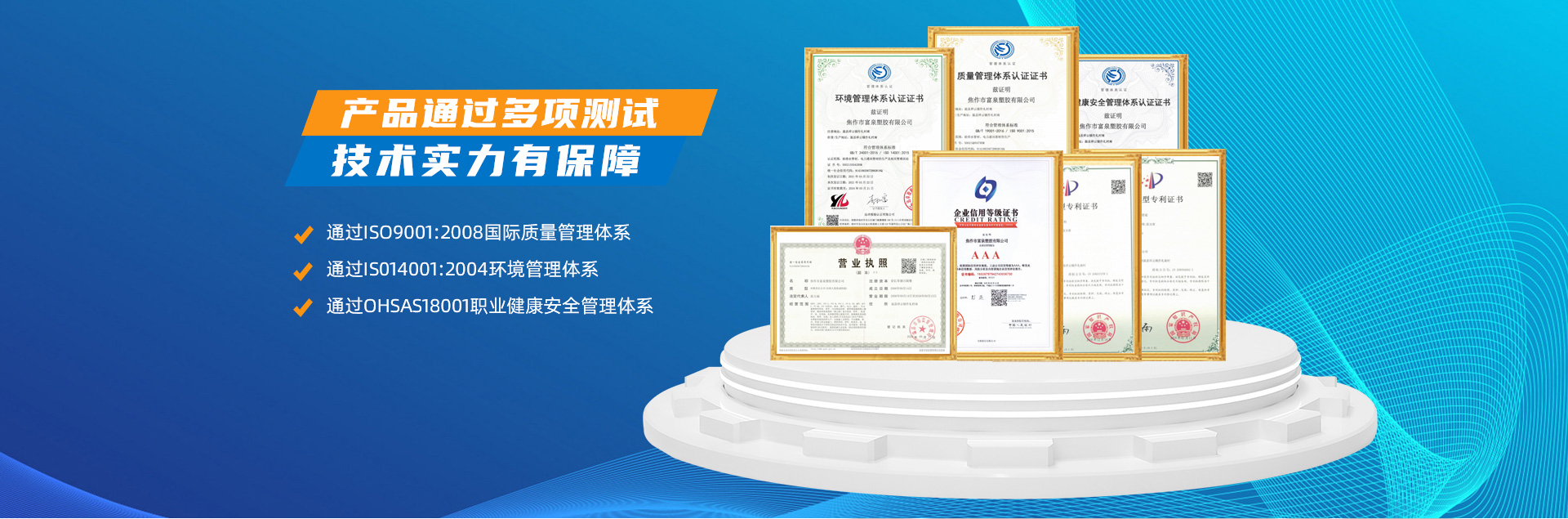 - 焦作市富泉塑膠有限公司,創(chuàng)立于1995年,是一家集研發(fā)、設計、生產(chǎn)、銷售為一體的大型管材企業(yè)。公司位于太極故里、黃河之濱一一河南焦作溫縣。公司占地128畝,現(xiàn)有職工210余人,其中具有中技術職稱的19人。生產(chǎn)、檢驗設備58臺(套),包括PVC實壁管生產(chǎn)線11套、PE實壁管生產(chǎn)線12套、HDPE雙壁波紋管生產(chǎn)線6套、PVC雙壁波紋管生產(chǎn)線5套,檢驗設備14臺(套)。主要產(chǎn)品有:Φ20mm-630mm、各種壓力規(guī)格的PVCU、PVC-M、PE給水管材,PVC-U節(jié)水灌溉管材,HDPE燃氣和礦用管材,DN200-800mm的HDPE、PVC雙壁波紋管及各種噴灌、滴灌工程材料。承接大中型市政供排水、飲水安全及節(jié)水灌溉等工程。 富泉塑膠公司重視產(chǎn)品的質(zhì)量、安全、環(huán)保和節(jié)能,在同行業(yè)中率先完成了“新華節(jié)水產(chǎn)品認證”,全方面通過ISO9001:2008國際質(zhì)量管理體系、IS014001:2004環(huán)境管理體系和OHSAS18001職業(yè)健康安全管理體系的一體化導入,并建立起規(guī)范的現(xiàn)代企業(yè)管理體系。公司以“質(zhì)量”為先導,采用質(zhì)量跟蹤、多環(huán)節(jié)把關的方法,組建具有行業(yè)水準的企業(yè)技術檢測中心,常年委托水利部節(jié)水灌溉設備檢測中心、河南省產(chǎn)品質(zhì)量監(jiān)督檢驗院對產(chǎn)品跟蹤檢測,并由中國人民保險公司承保產(chǎn)品質(zhì)量。公司連續(xù)多年被河南省水利廳確定為“安全飲水設備、節(jié)水灌溉設備”定點生產(chǎn)企業(yè),并獲得“中國名優(yōu)產(chǎn)品”“質(zhì)量、服務、信譽AAA企業(yè)”“河南省**產(chǎn)品”“河南省水利企業(yè)”“河南省守合同、重信用企業(yè)”等榮譽稱號?! 「蝗苣z公司堅持“用戶為上”的服務理念,長期以來,全方面關注客戶價值,不斷提升服務水平。服務隊伍常年為客戶的產(chǎn)品設計、施工、安裝提供合理的方案和全程細致、周到、**、快捷的技術服務。公司自成立以來,一直堅持以人為本的宗旨,塑造企業(yè)形象,并致力于新產(chǎn)品的開發(fā),憑借雄厚的技術開發(fā)能力,先進的工藝制造流程,嚴格的質(zhì)量管理保證體系,優(yōu)良的售后服務網(wǎng)絡,已成為河南省大的飲水、灌溉及排水管材設備制造商。產(chǎn)品暢銷全國,而且還以公司雄厚的綜合實力在業(yè)界中占據(jù)著重要的地位。